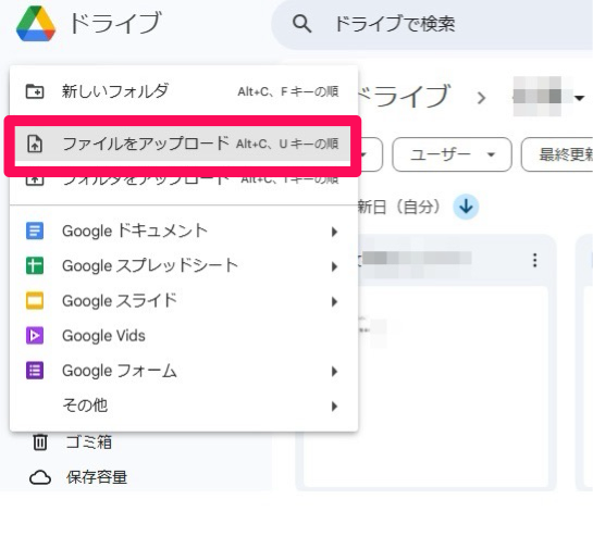 次に、PDFファイルをGoogleドライブにアップロードします。