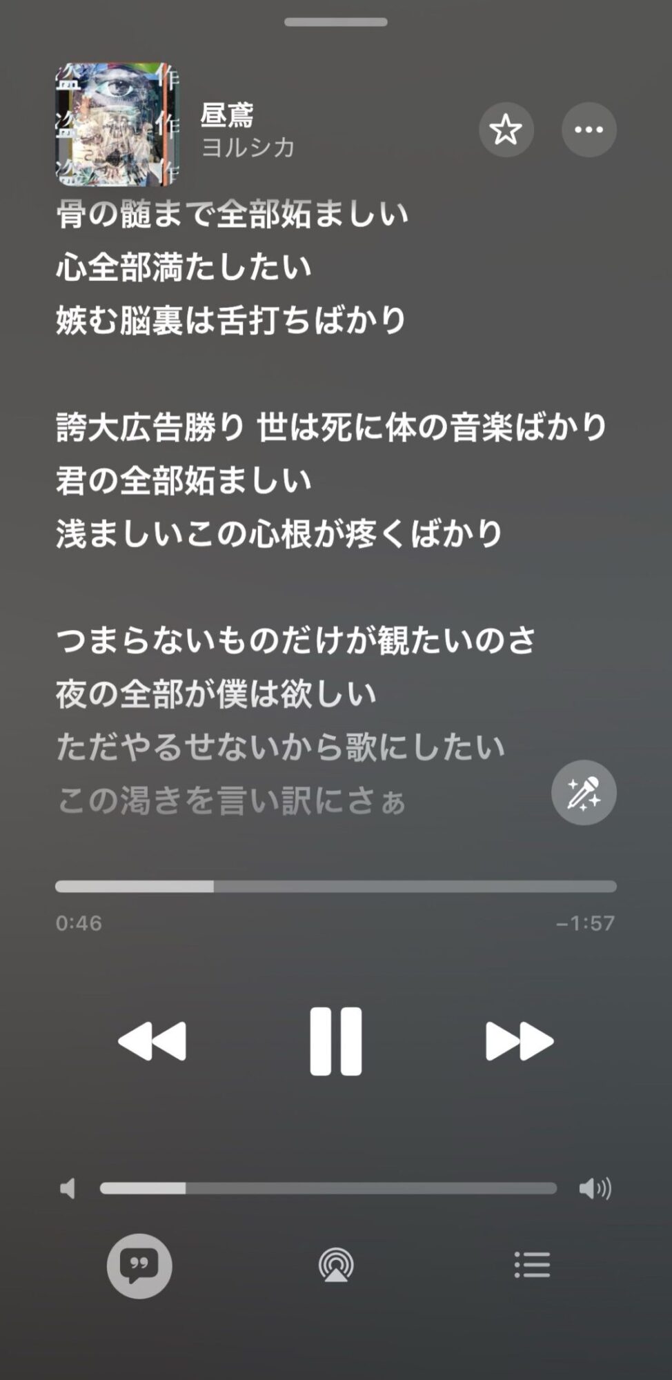 iPhoneのMusicアプリで曲の歌詞を表示させると、入力した歌詞が見られます。