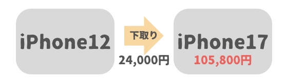 なので今回はiPhone12を下取りに出してiPhone17を購入するケースを例に考えてみます。